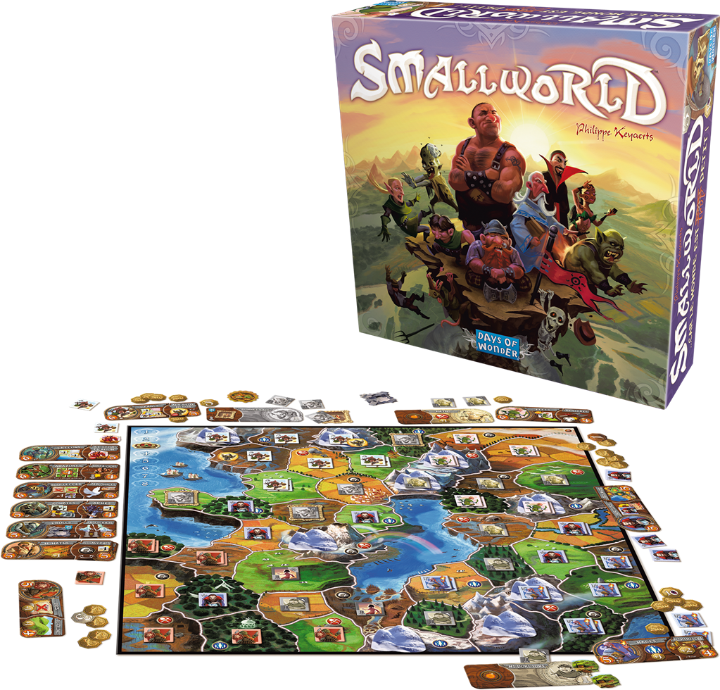 SmallWorld est un jeu pour 2 à 5 joueurs dans lequel chacun lutte pour établir sa civilisation dans un monde fantastique et fantasque. Cependant, ce monde est tout petit, et il n’y a pas assez de place pour tous ! Prenez la tête d’un des quatorze Peuples de SmallWorld et étendez votre empire aux dépens de vos voisins en vous appuyant sur les pouvoirs spéciaux de vos personnages ! Lorsque votre civilisation sera trop exposée, il faudra avoir la sagesse de le reconnaître et d’accepter son déclin… mais ce sera pour mieux vous relever avec une nouvelle civilisation et remporter la victoire !