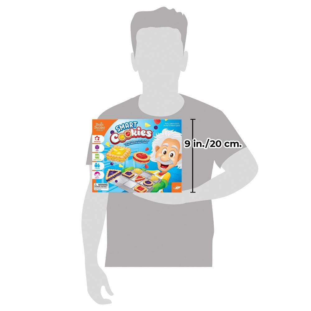 Le joueur dispose d’indices logiques pour placer 9 biscuits sur la grille de 9 cases. Les défis, de plus en plus complexes, indiquent pour chaque biscuit une ou plusieurs places possibles, ou plusieurs emplacements interdits, ou un indice de placement par rapport à une autre pièce. Les indices portent sur la forme et/ou la couleur. À mesure qu’ils atteignent les différents niveaux d’une logique déductive de plus en plus complexe, les joueurs développent et améliorent leur capacité de raisonnement. Contenu: 1 grille en carton épais (20 x 20 cm), 9 biscuits en plastique souple (3 carrés – 4 x 4 cm, 3 cercles, 3 triangles, en 3 couleurs), 1 livre avec 64 défis ((8 niveaux de difficulté) et solutions illustrées, règle.