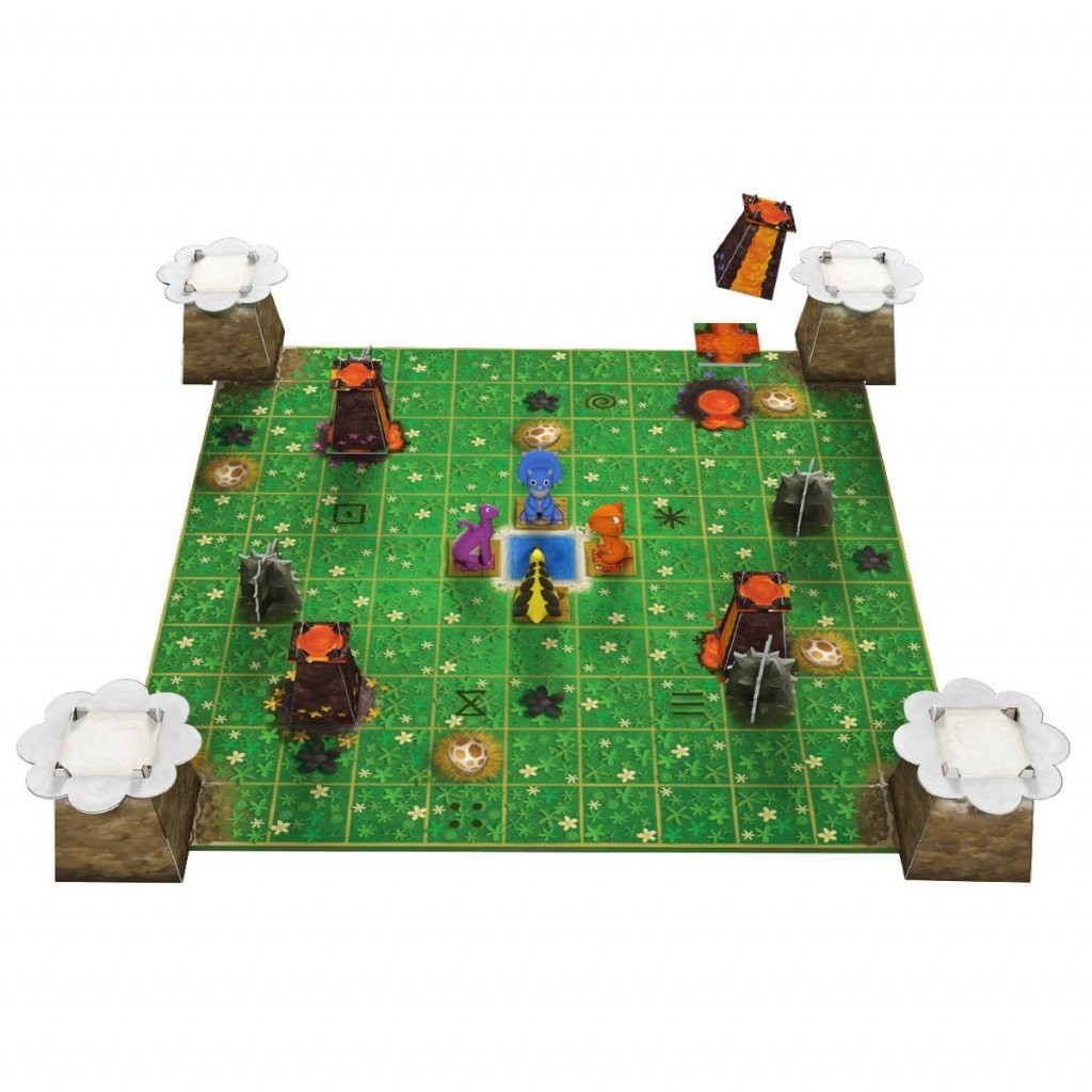 Contenu : 4 Figurines de Dinosaures 1 Plateau de jeu 4 Volcans 4 Montagnes 9 Obstacles 58 Tuiles Danger 6 Jetons Oeufs de Dino 1 Grand sac en tissu 1 Règle du jeu