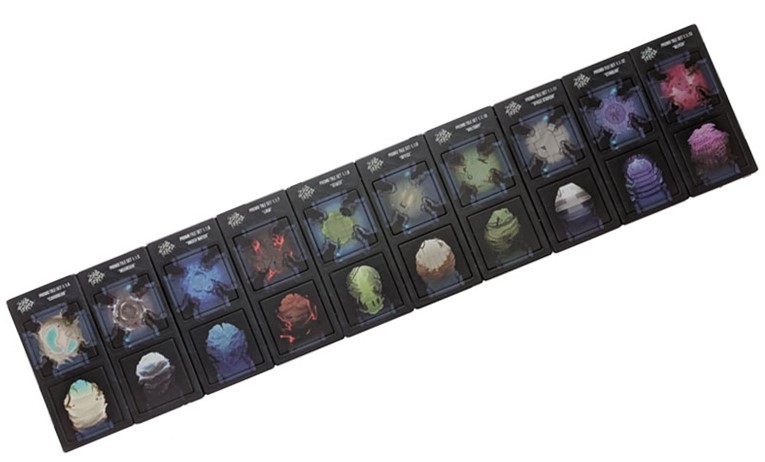 10 tuiles différentes à collectionner, chacune avec des illustrations uniques: Glitch, Bureau, Militaire, Montagne, Caraïbes, Station spatiale, Cthulhu, Sous-marin, Égout, Lave.