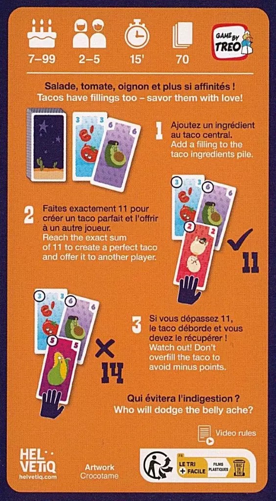 - Si vous dépassez cette limite, le taco déborde et vous récupérez toutes les cartes en pénalité !
