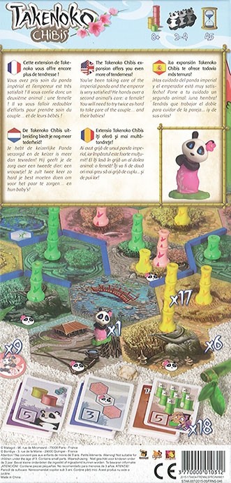 Préparez-vous à tomber sous le charme de ces adorables pandas et à relever de nouveaux défis dans Takenoko – Chibis. Cette extension vous offre encore plus de tendresse, de stratégie et d’amusement. Prenez soin du couple impérial, cultivez des bambous et veillez sur leurs précieux bébés. N’oubliez pas de consulter le livret de règles pour maîtriser les subtilités de cette expansion passionnante. Plongez dans l’univers doux et merveilleux de Takenoko – Chibis dès aujourd’hui !