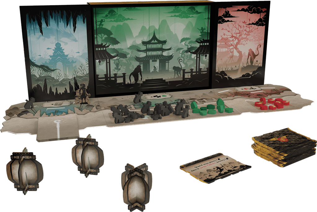 Deux joueurs s’affrontent pour cueillir le plus de Pêches d’immortalité afin de nourrir leurs singes, tout en déplaçant le Roi Singe, en utilisant les armes du Dragon, et en ramassant des pierres de Jade.