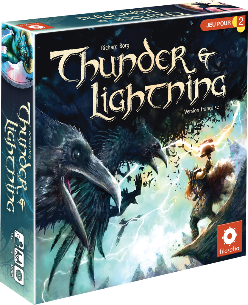 Par une nuit fatidique, la couronne d’Odin fut volée par l’infâme Loki. La colère d’Odin fut si grande qu’il commanda à son fils Thor de retrouver son précieux trésor. Il confia à Thor son anneau sans se douter que cela faisait partie du plan diabolique de Loki pour le récupérer. Maintenant aux commandes d’une armée chacun, Thor et Loki espèrent mettre la main sur le trésor de l’autre. Thunder & Lightning est un jeu de cartes et de stratégie dont le but est de mettre la main sur le trésor de votre adversaire. Percez les rangs de l’ennemi dans un épique duel mythologique !