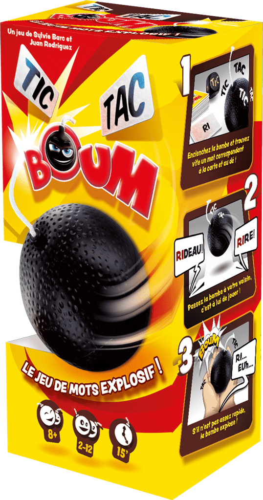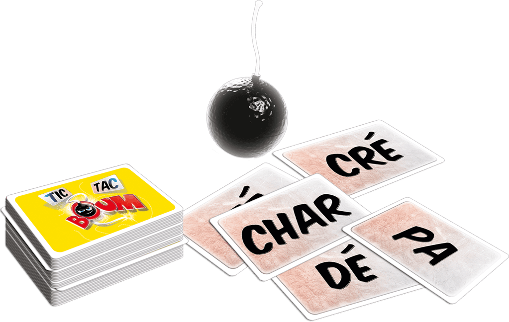 Pour jouer, lancez d’abord le dé. Sa face indique l’endroit du mot où devra être placé le son tiré par la suite : au début, à la fin ou n’importe où dans le mot trouvé. Piochez alors une carte indiquant le son de la manche (ex. : char, yé, etc.). La bombe est ensuite déclenchée.