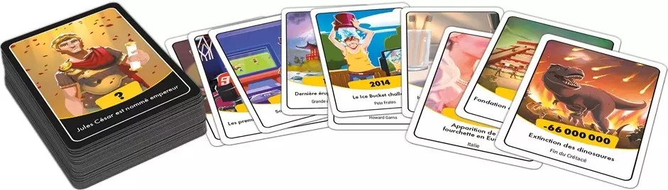 À votre tour, vous choisissez une carte de votre main et décidez où la positionner dans la ligne chronologique déjà en place. Par exemple, vous pensez qu’une découverte célèbre vient après l’invention de la roue mais avant la découverte de l’Amérique. -