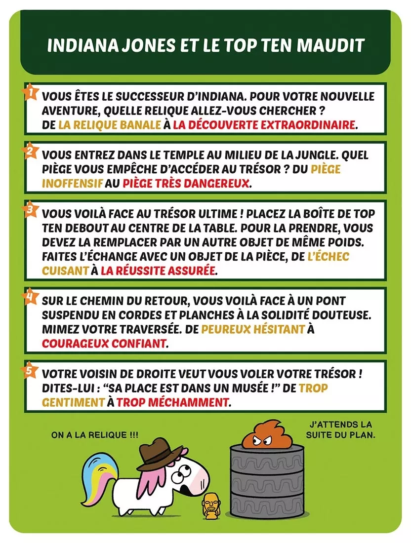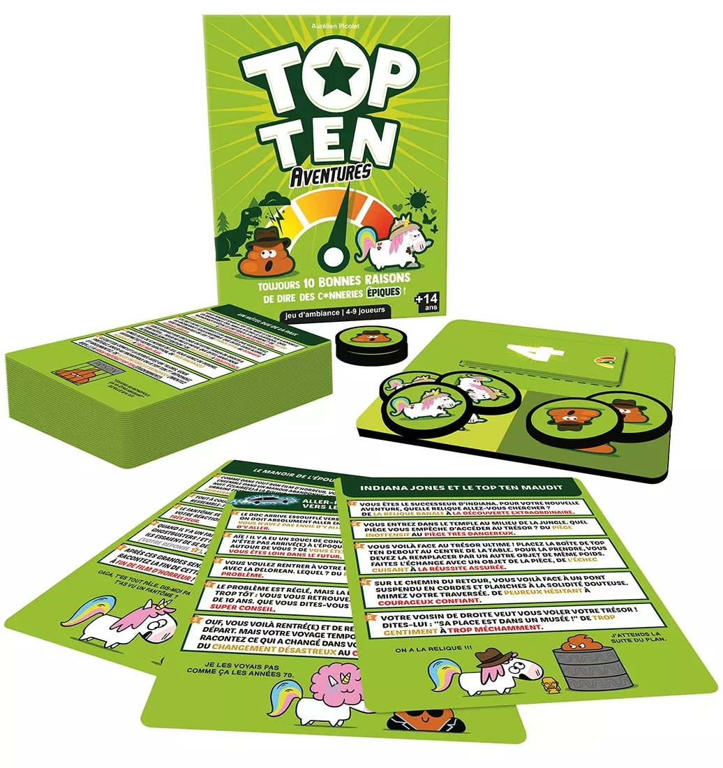 Avec ses scénarios à la chaîne formant des histoires délirantes, Top Ten Aventures renforce la dimension narrative du jeu original, sans en compliquer les règles.