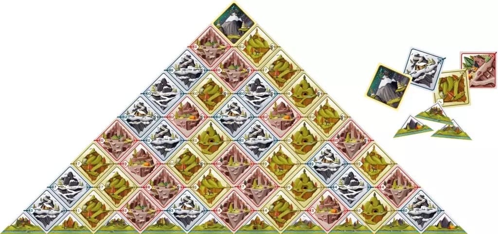 ? Le principe : Construisez ensemble une grille pyramidale de 45 cartes, représentant les versants d’une montagne, puis ajoutez la carte Sommet pour triompher. Mais attention :