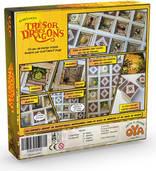 Mémoire et prise de risque dans ce mémo ou l’on peut retourner autant de carte que l’on veut, mais si l’on découvre un dragon ou une araignée, on perd tout ce que l’on a acquis pendant le tour.