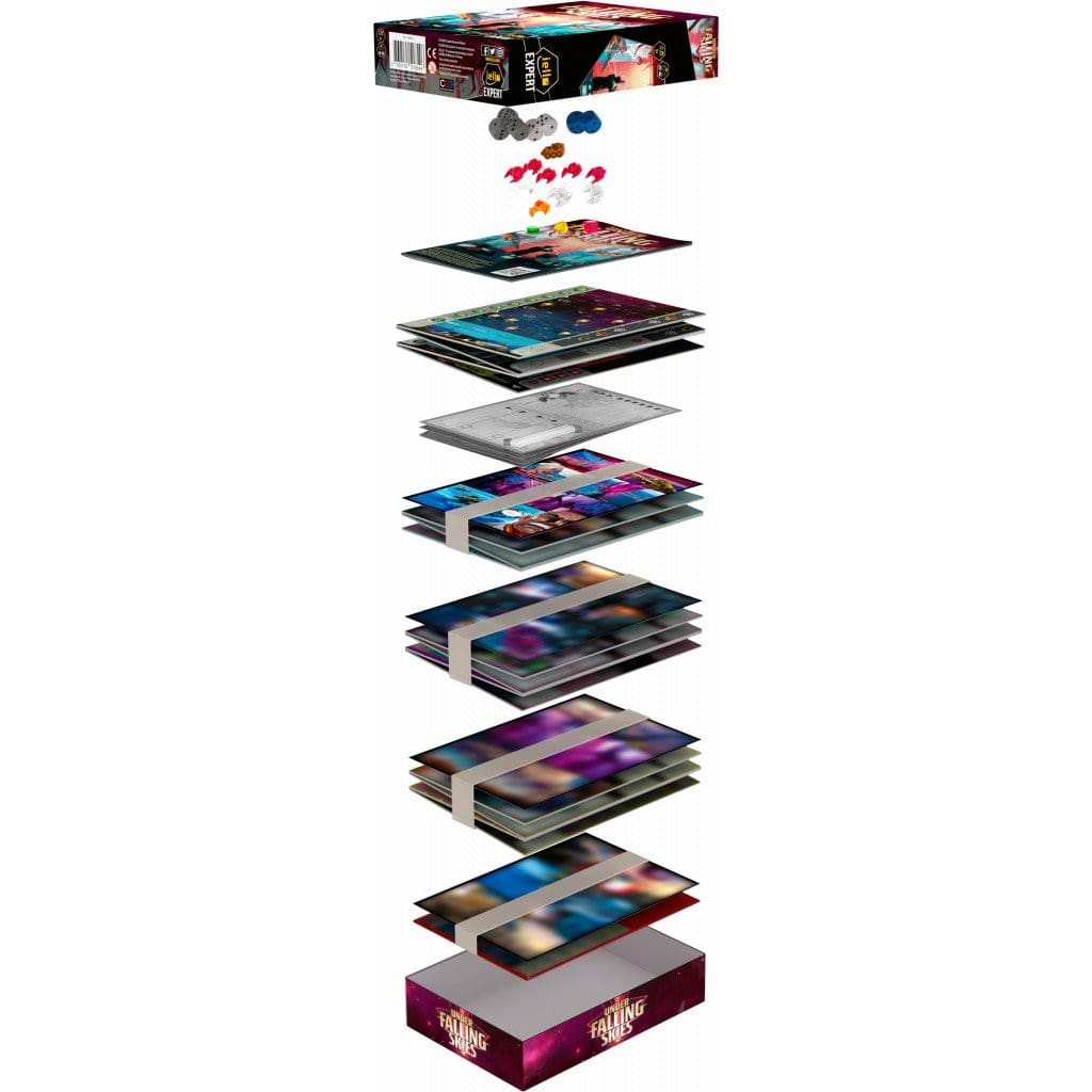 Un contenu pléthorique Under Falling Skies est un concentré de bonnes idées qui rend les parties totalement addictives. Chaque défaite appelle à une revanche, chaque victoire donne envie de faire mieux encore. Si la version Print & Play publiée d’Under Falling Skies a permis de le découvrir et d’asseoir sa popularité : cette version boîte propose un contenu considérablement enrichi ! Avec ses nouvelles villes, nouvelles tuiles, personnages améliorables, mode campagne et scénarios, cette édition d’Under Falling Skies propose une intensité stratégique inédite pour un challenge à la mesure des joueurs les plus exigeants.