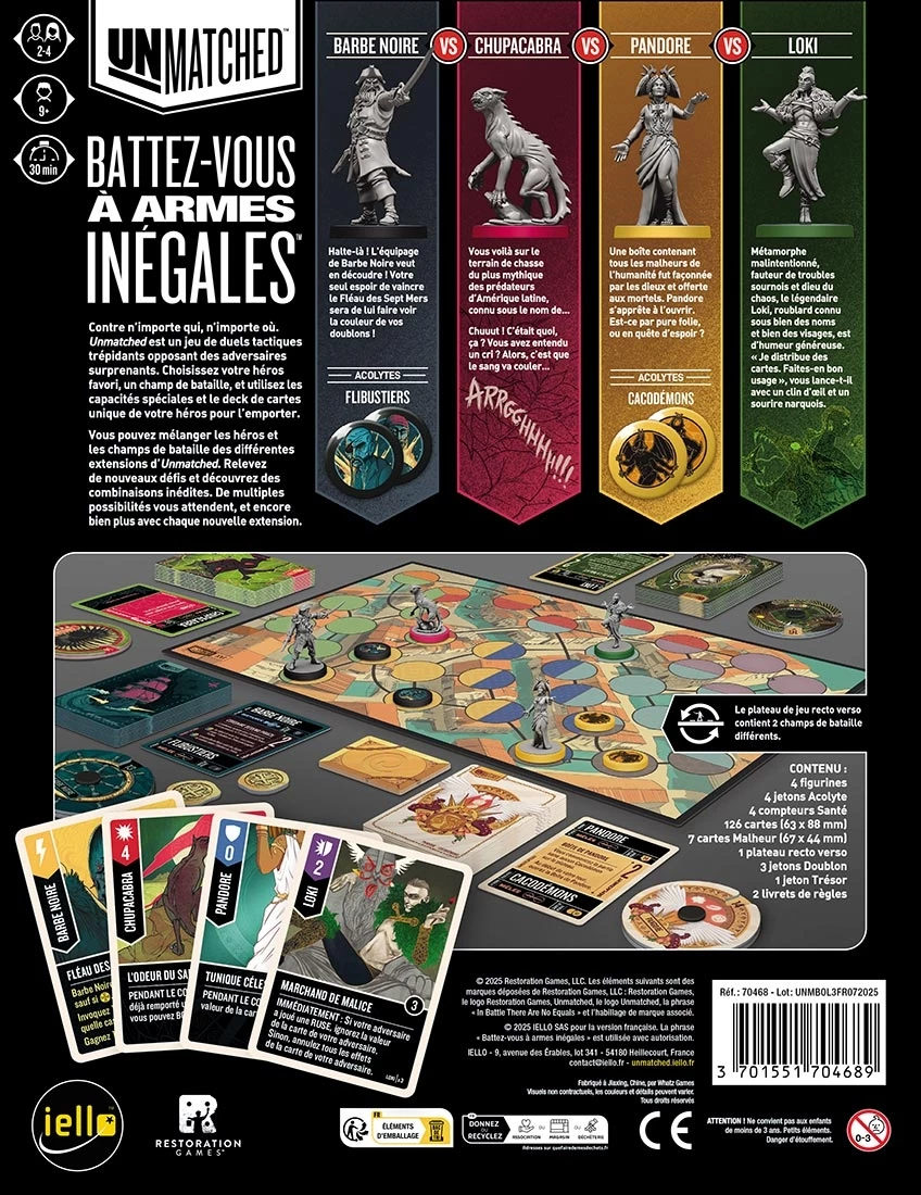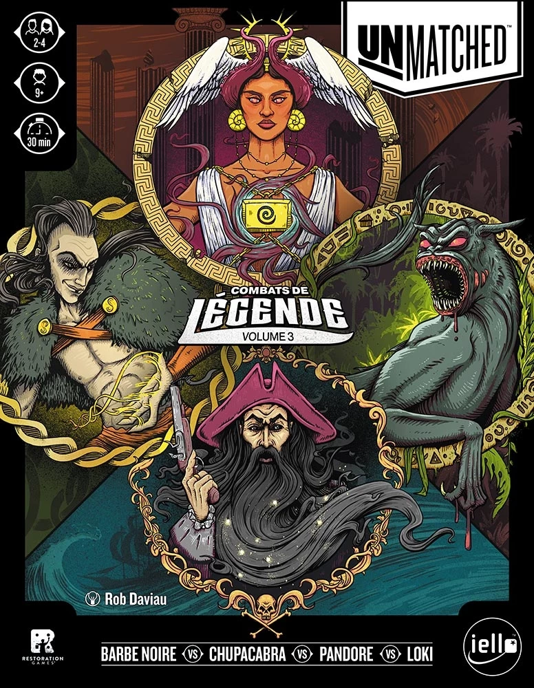 Ce troisième volume d’Unmatched vous permet d’incarner Barbe Noire, Chupacabra, Pandore ou Loki.