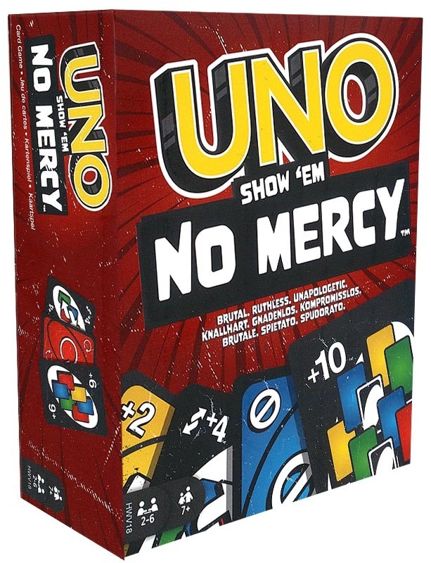 Uno – Show’Em No Mercy est une variante sans merci du jeu de cartes classique Uno. Les règles familières sont repoussées à leurs limites dans ce défi palpitant où seuls les plus habiles pourront survivre.