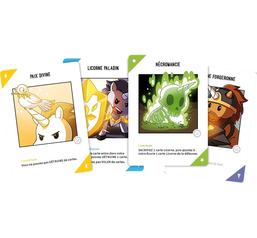 Affinez votre stratégie avec des licornes rompues au combat et à la sorcellerie. Chaque carte apporte une dimension tactique supplémentaire, offrant des choix cruciaux pour le joueur avisé.