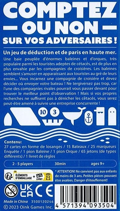 Whale To Look allie observation, stratégie et rivalité dans une aventure captivante en haute mer. Anticipez les déplacements de vos adversaires, choisissez judicieusement vos itinéraires et soyez prêts à vous adapter à toutes les situations pour devenir l’agence de voyage la plus renommée de la baie. Êtes-vous prêt à relever le défi et à montrer à vos touristes les merveilles de l’océan ?