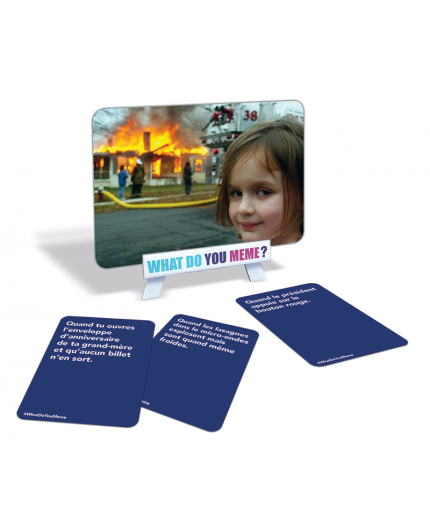 Qui créera les mèmes les plus drôles ? Faites appel à votre imagination et à votre humour le plus scabreux pour associer les cartes Texte les plus crues aux images les plus cools et former ainsi les meilleurs « mèmes ». Celui ou celle qui trouvera la combinaison la plus drôle entre texte et image gagnera la carte ? et 1 point.