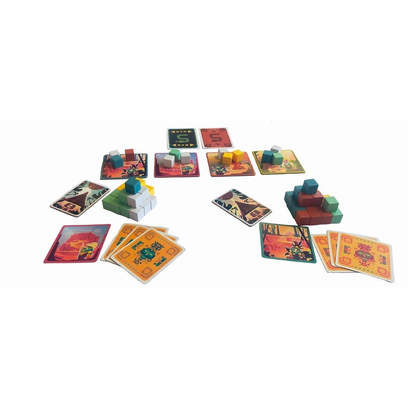 Construction de la pyramide : Une fois les blocs obtenus, les joueurs les utilisent pour bâtir leur pyramide. L’objectif est de créer les plus longues séries de blocs de la même couleur, ou de répondre aux critères des objectifs communs qui peuvent influer sur le score final (par exemple : avoir le plus de blocs jaunes ou créer une pyramide éclectique avec de nombreuses couleurs différentes).