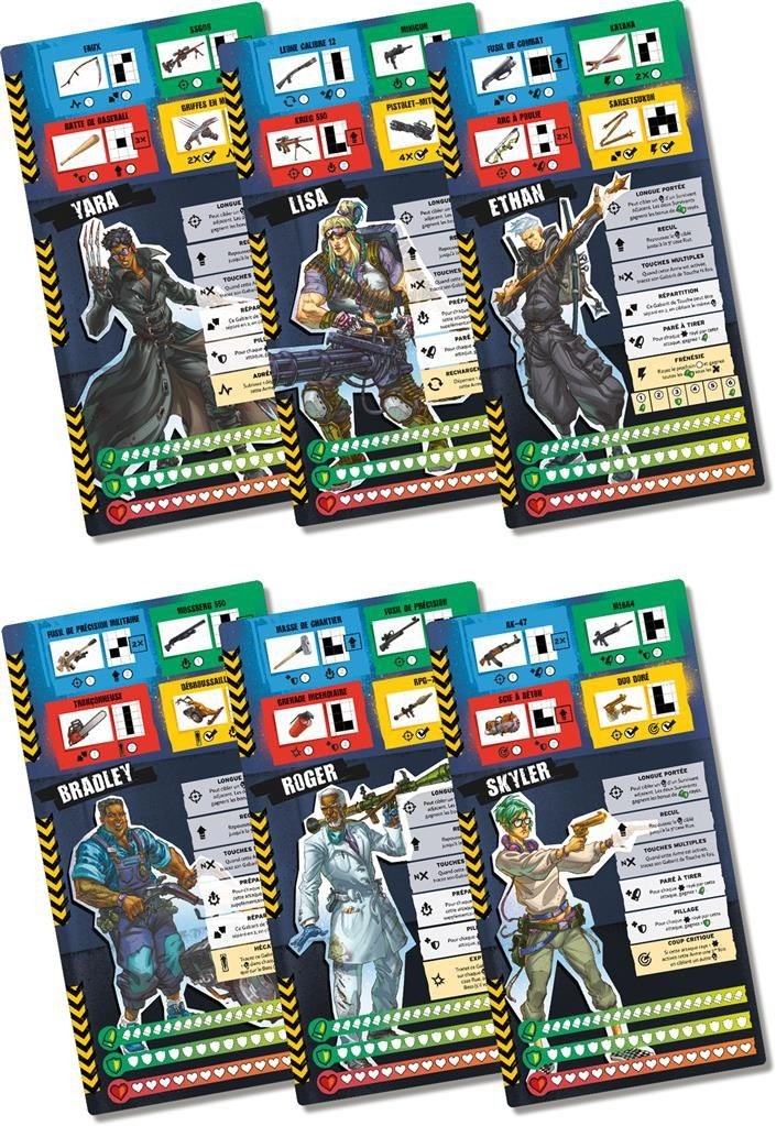 Dans Zombicide Gear Up, chaque joueur incarne un survivant déterminé à repousser l’invasion zombie. Vous utiliserez vos cartes d’armes stratégiquement pour remplir les grilles de cases des zombies ennemis qui avancent inexorablement vers vous. La coordination entre les joueurs est essentielle pour survivre dans ce monde hostile.